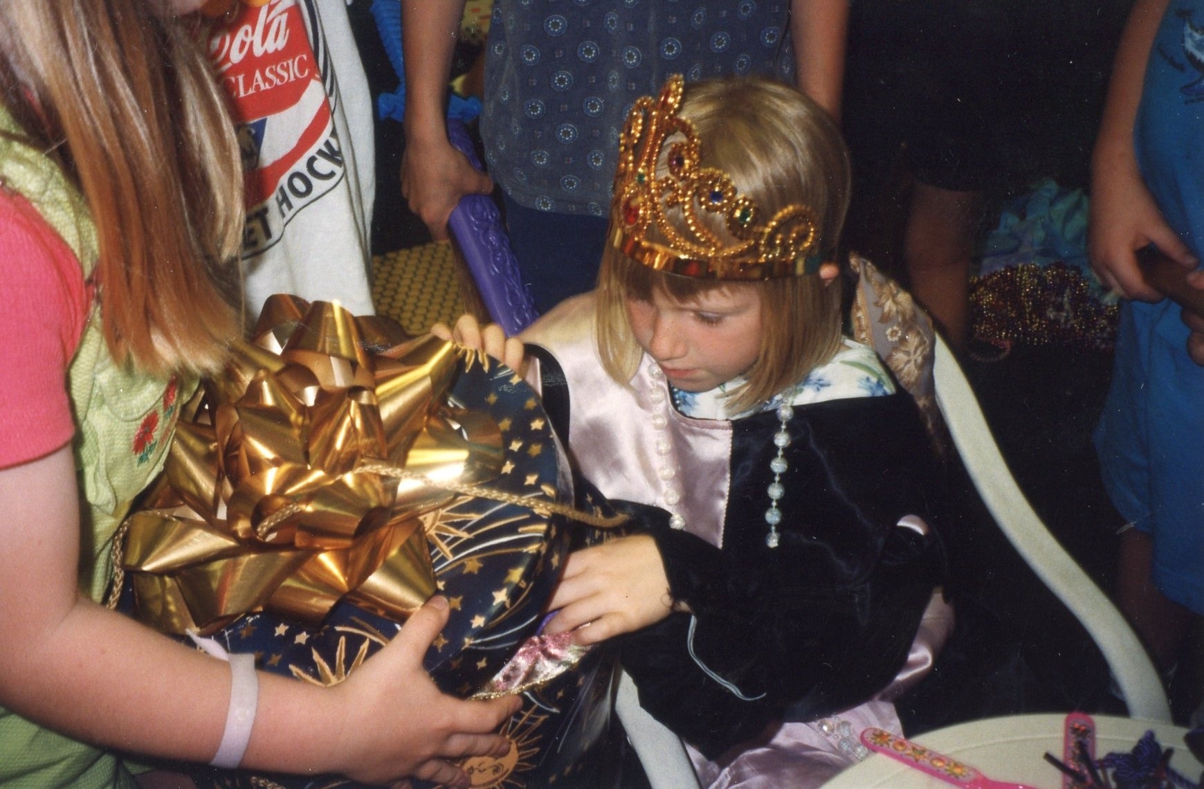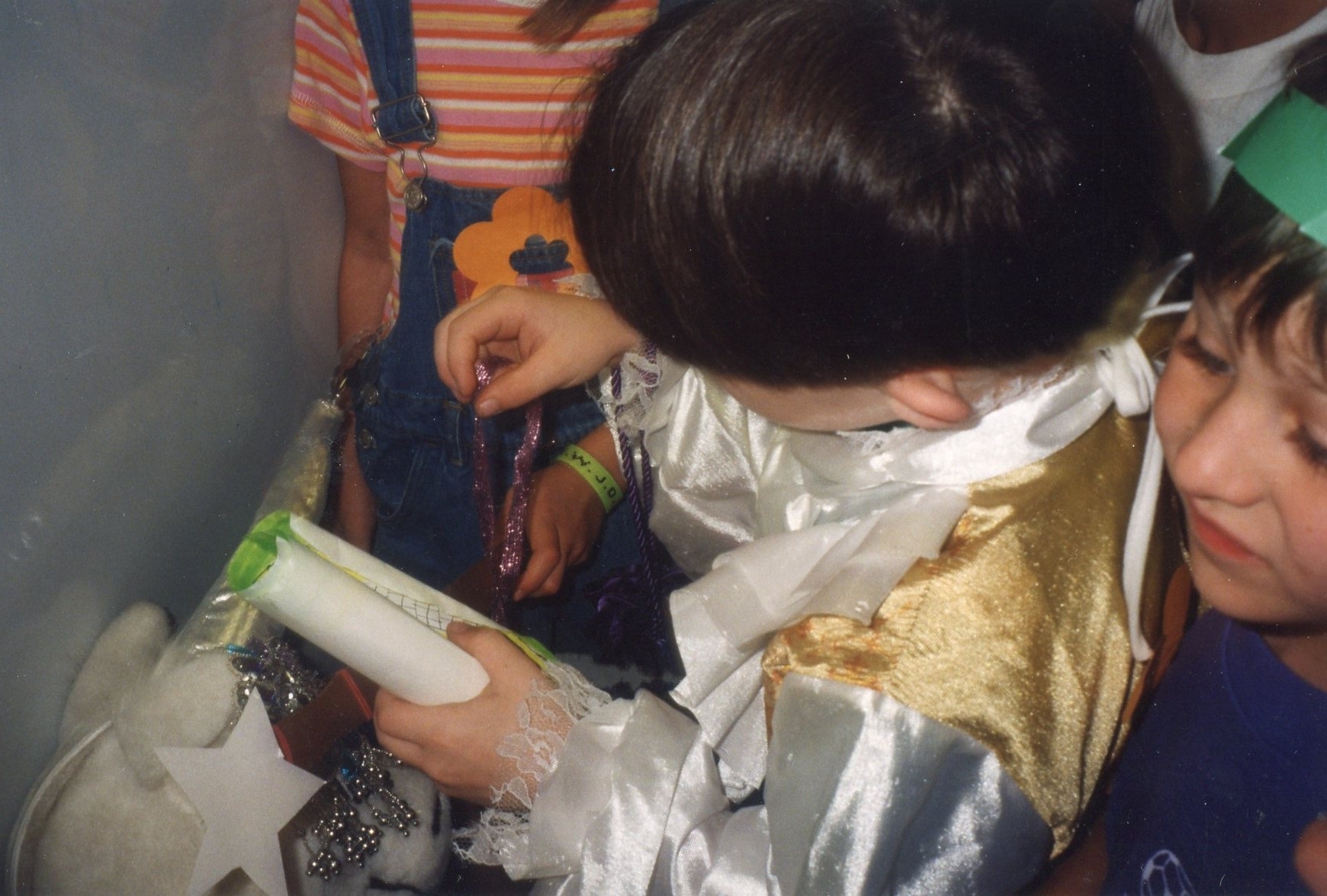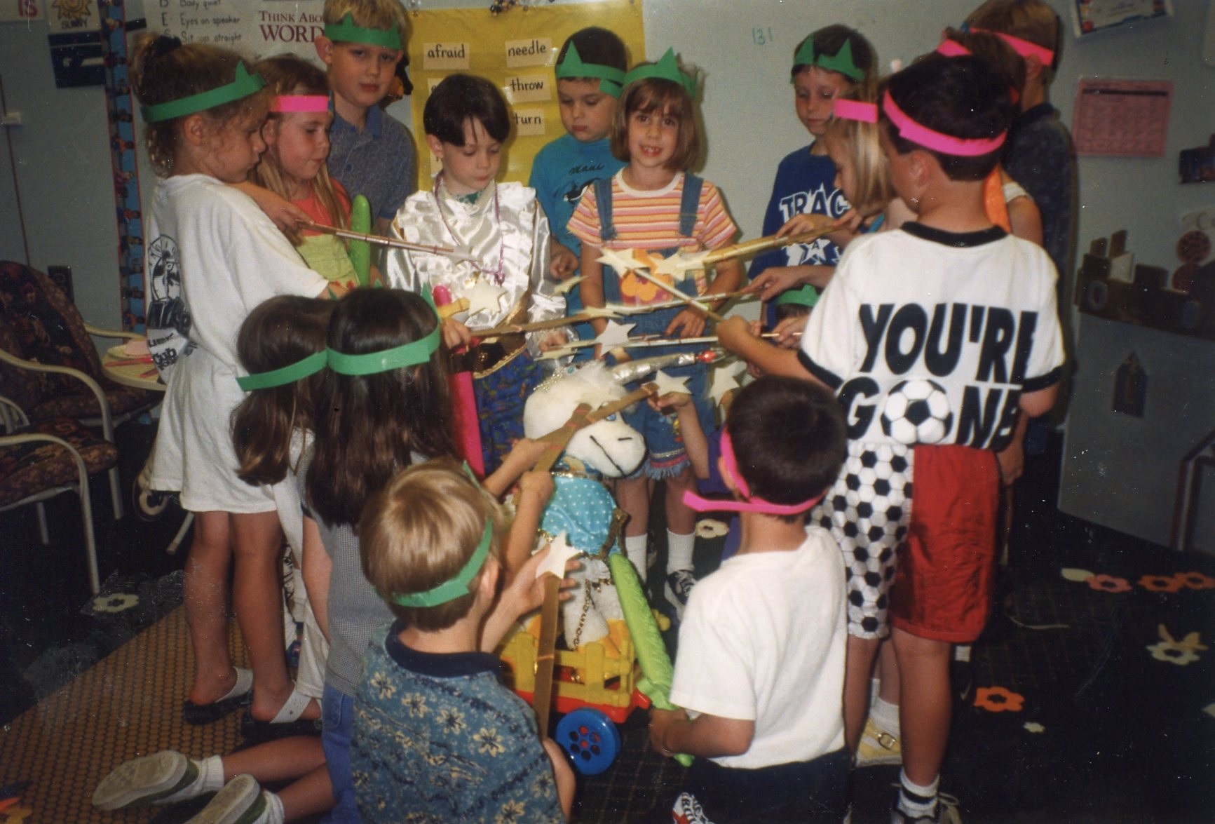 Green Leaf Elementary Krendoll knights with Suzarian swords Princess is rewarded a present Princess fits on her princess shoes Princess blows out her cake Prince Emeray becomes a knight Green Leaf Elementary students pose on Krendoll island