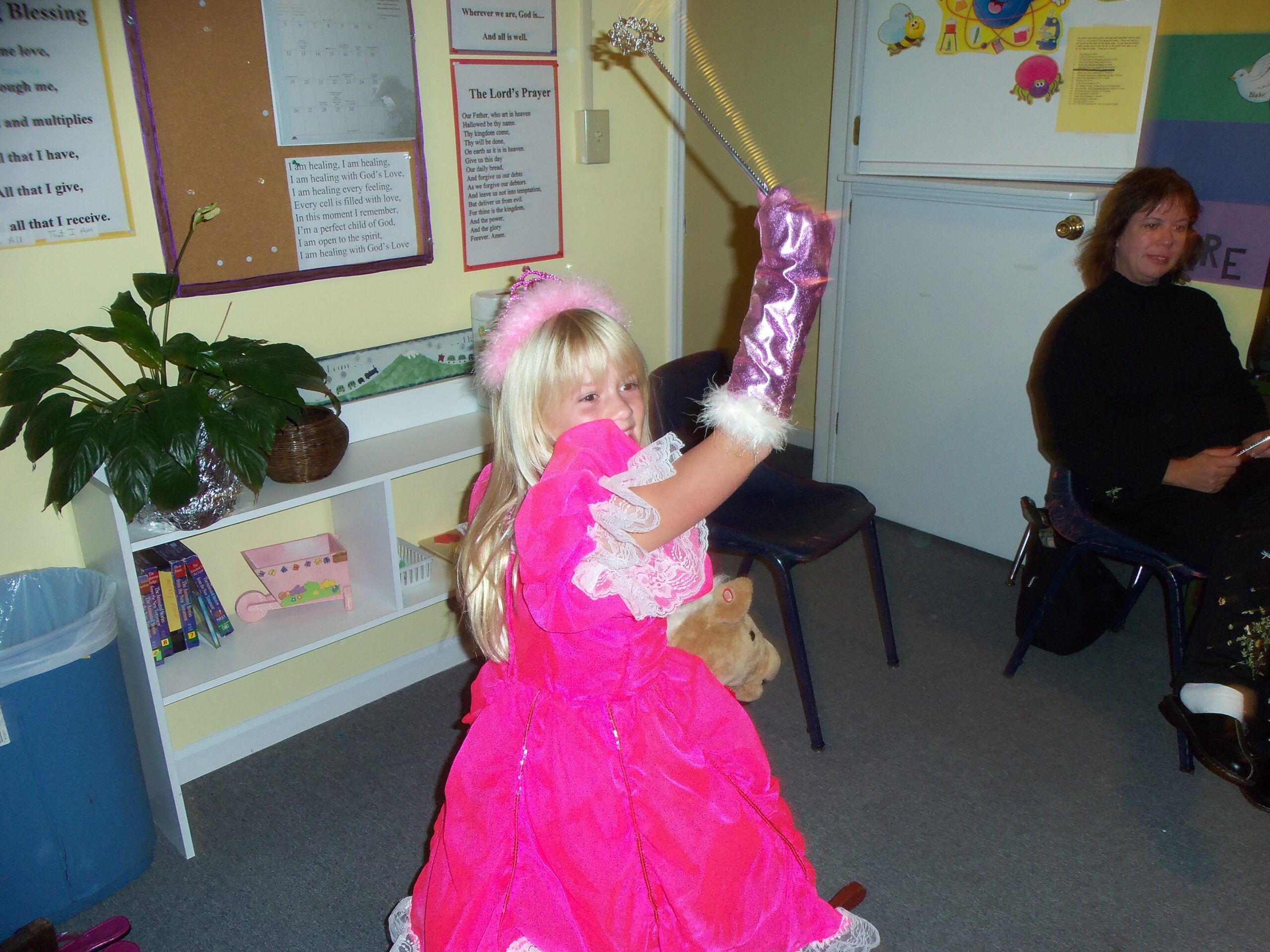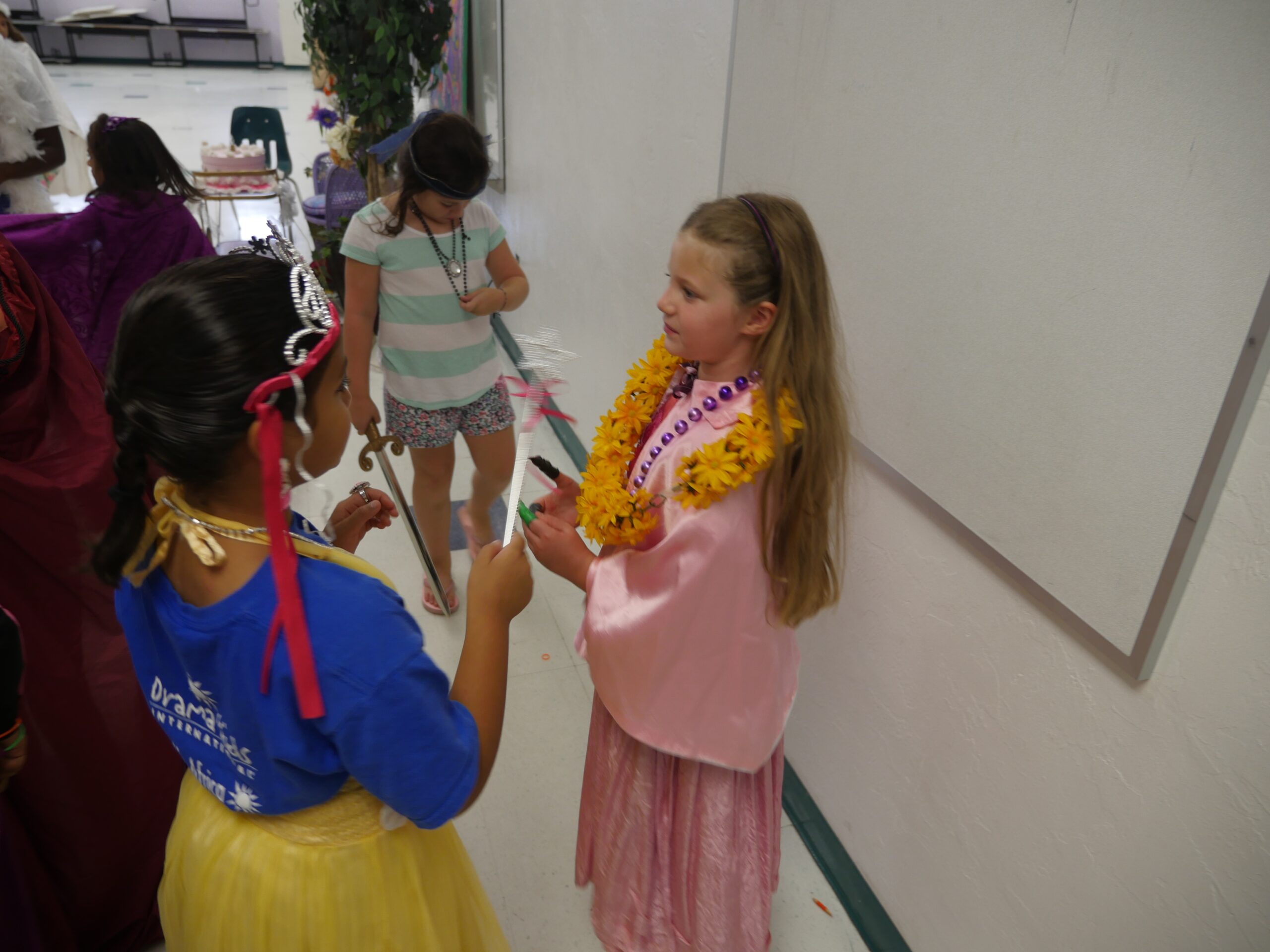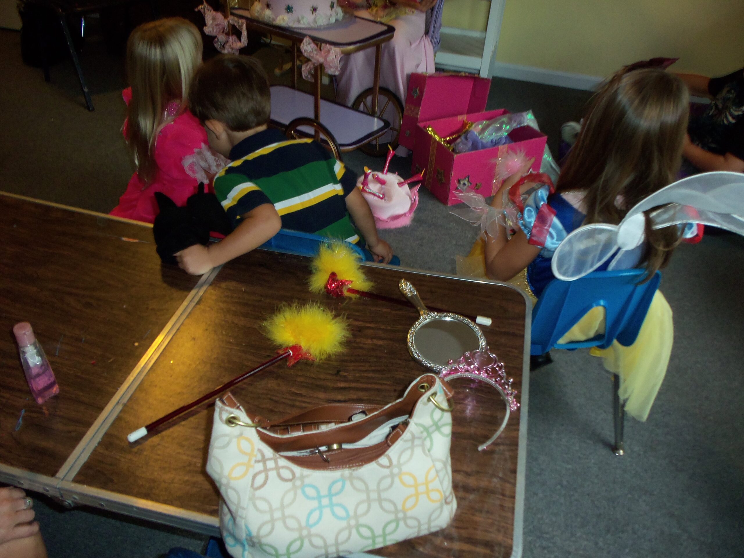Boy audience member has Krendoll island beads on while Princess decides what dress to wear.