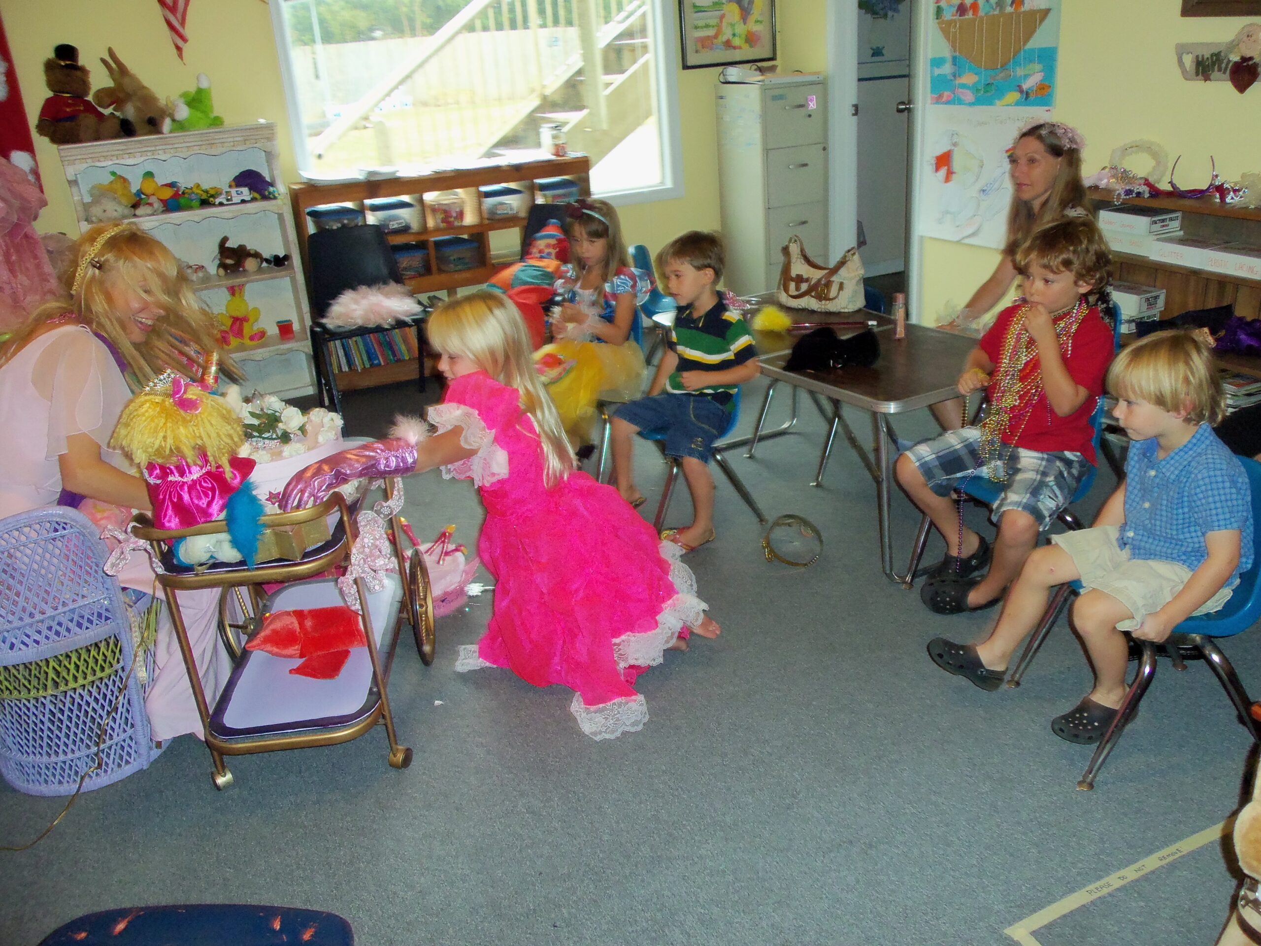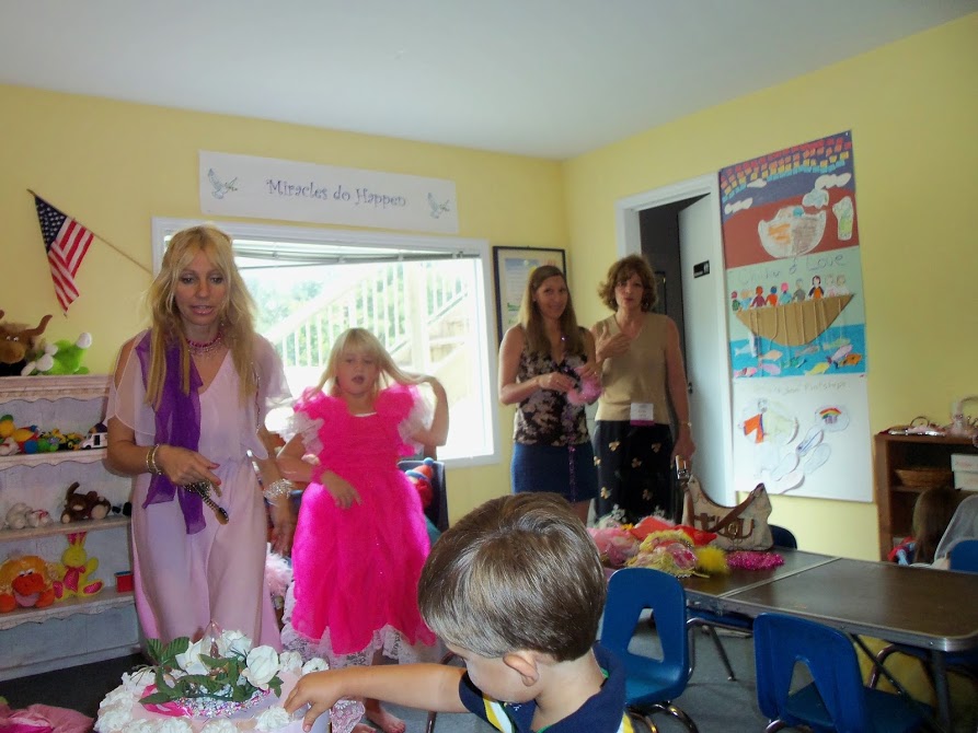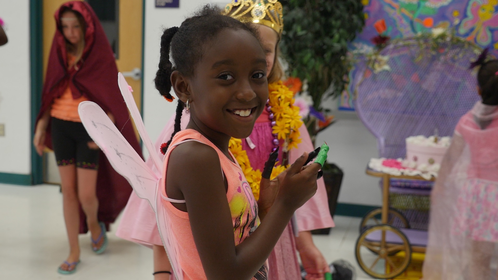 Boy audience member has Krendoll island beads on while Princess decides what dress to wear.